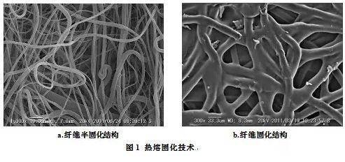 对此问题,我们引进热熔固化技术、纤维防脱落技术等,前者可以降低纤维断裂的风险,后者可以降低已断裂纤维脱落的可能性,通过双重技术保障解决了纤维脱落的问题。热熔固化技术是通过对过滤材料施加一定的温度及压力,在不影响材料结构及精度的情况下,使纤维之间由半固化结构加强为固化结构,从而提高强度(见图1);纤维防脱落技术是采用与短纤维不同的长丝材料,在过滤层下游增设一道保护层,避免断裂的纤维从滤芯中脱离落入胶粘剂(见图2)。