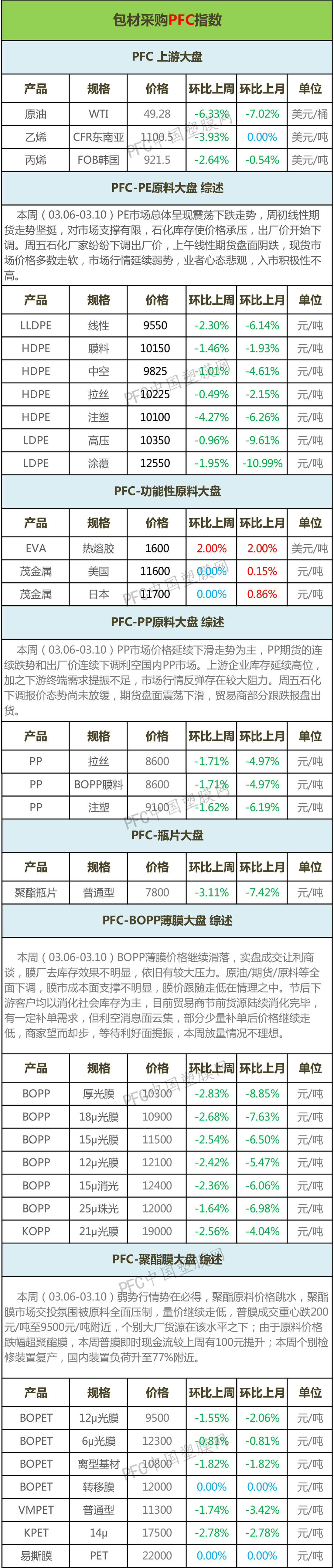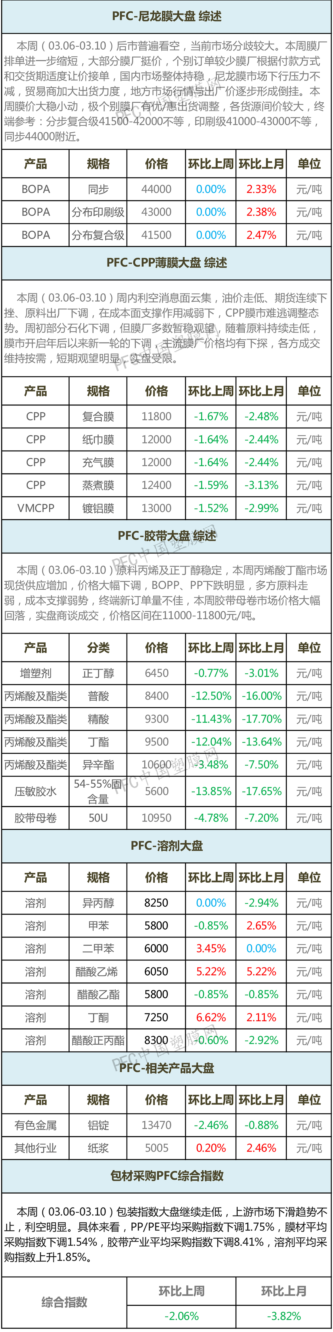 编者声明: 1、以上指数价格为全国各地市场加权平均值,数据仅供参考。 2、数据仅用来衡量主要企业或当地市场的一个价格水平和趋势,不作为成交依据。 以上数据为中国塑膜网独家采集整理,如使用本文,请注明内容来源于“中国塑膜网” 由于客户群体不同,据不同要求条件价格不一致, 如价格有争议,请与我网(www.pfchina.com.cn)直接联系,感谢支持与协作!