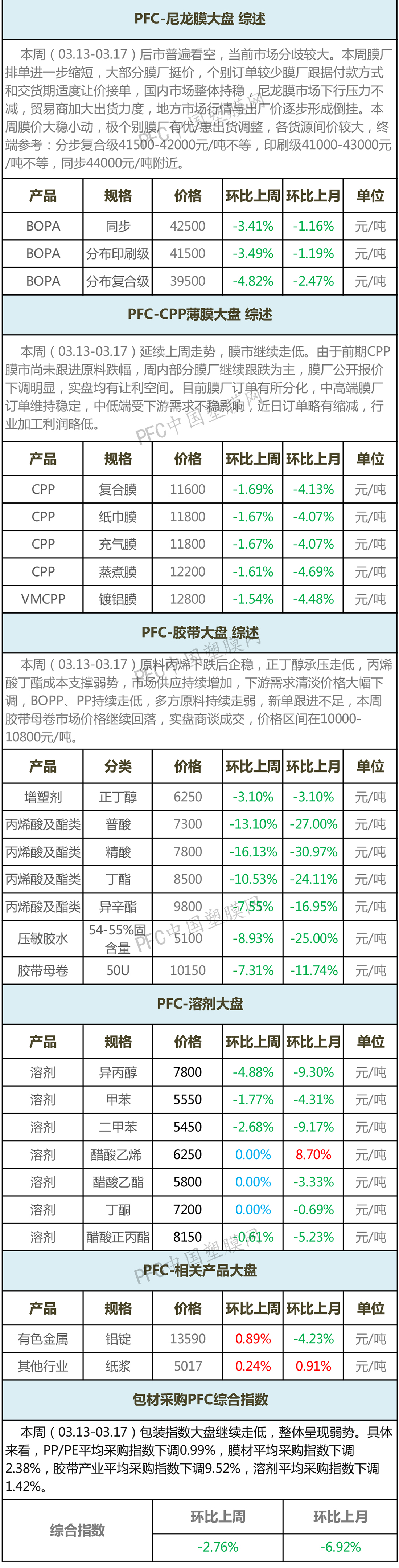 编者声明: 1、以上指数价格为全国各地市场加权平均值,数据仅供参考。 2、数据仅用来衡量主要企业或当地市场的一个价格水平和趋势,不作为成交依据。 以上数据为中国塑膜网独家采集整理,如使用本文,请注明内容来源于“中国塑膜网” |