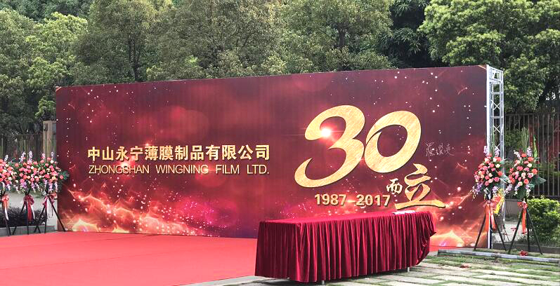 2017年,中山永宁薄膜制品有限公司成立30周年。三十年成长,塑造品质;三十年努力,塑造信誉;三十年发展,塑造品牌。回首过去,一代又一代永宁薄膜人,从百废待举之时,不畏艰苦,勇于面对挑战,使得公司规模由小到大,竞争力由弱到强的成功转变。