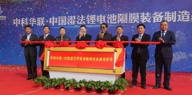 锂电隔膜领域进行的如火如荼的时刻,装备制造商青岛中科华联也走在行业前端。2017年3月24日,青岛中科华联新材料股份有限公司举行了“中科华联·中国湿法锂电池隔膜装备制造基地”成立庆典活动,黄岛区政府副区长隋斌、中国电池工业协会理事长赵金生、中国塑料加工工业协会副秘书长孙冬泉以及来自全国的专家、企业代表共计400余人参与了此次庆典。隋区长与中科华联董事长郅立鹏、总经理陈继朝等人共同对“中科华联·中国湿法锂电池隔膜装备制造基地”进行揭牌。