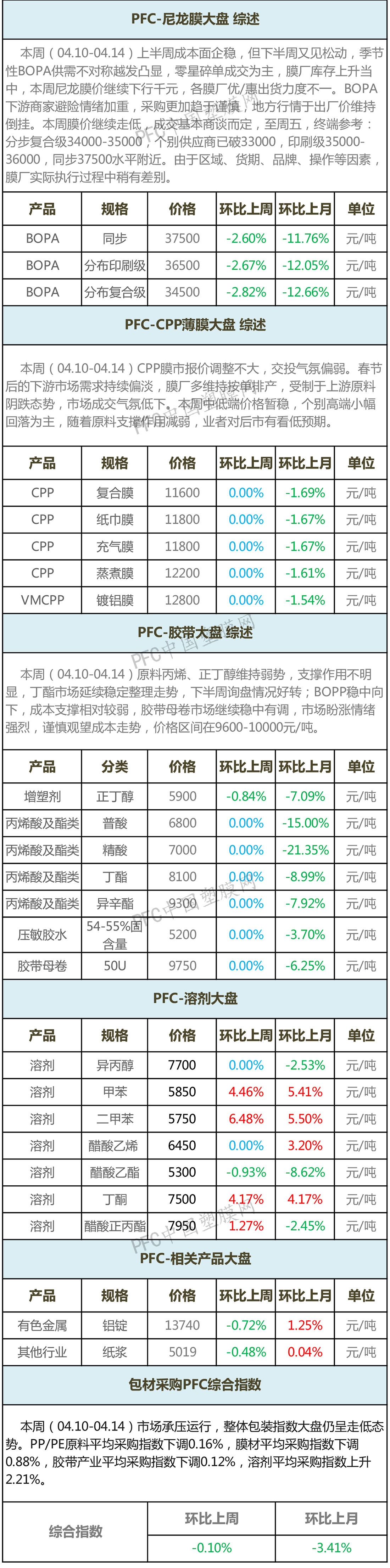 编者声明: 1、以上指数价格为全国各地市场加权平均值,数据仅供参考。 2、数据仅用来衡量主要企业或当地市场的一个价格水平和趋势,不作为成交依据。 以上数据为中国塑膜网独家采集整理,如使用本文,请注明内容来源于“中国塑膜网” |