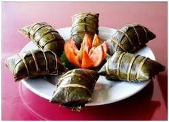 云南四方粽:清雅质朴的东南亚风情,原料是糯米、猪肉和绿豆,以芭蕉叶或荷叶包裹,可直接食用,亦可切片烘烤、油煎或蘸酱料。