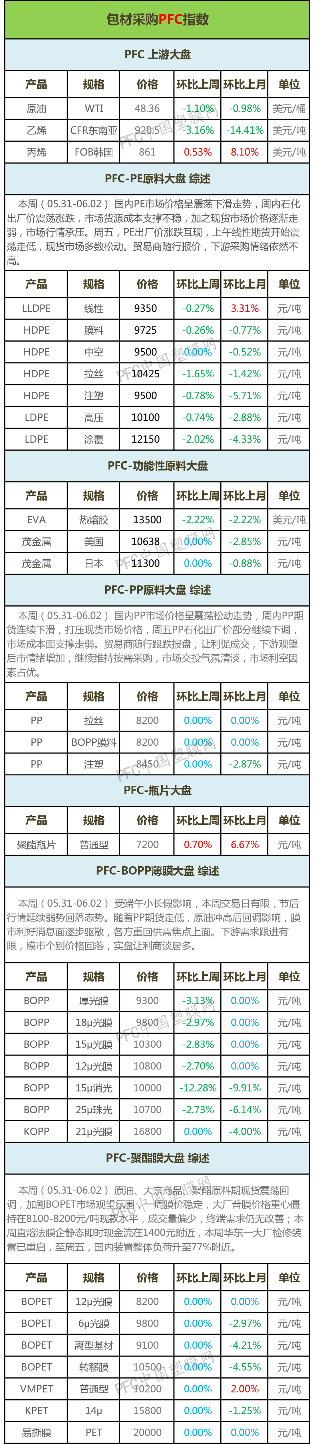 编者声明: 1、以上指数价格为全国各地市场加权平均值,数据仅供参考。 2、数据仅用来衡量主要企业或当地市场的一个价格水平和趋势,不作为成交依据。 以上数据为中国塑膜网独家采集整理,如使用本文,请注明内容来源于“中国塑膜网” |