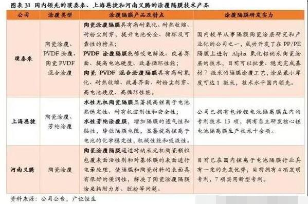 3.2 陶瓷、PVDF涂覆已经广泛应用,新型涂覆材料方兴未艾
