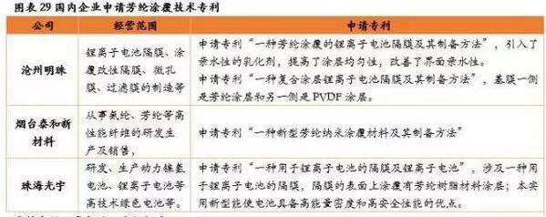 特斯拉旗下高端电动汽车(Model S)装载的锂电池就是采用芳纶涂覆隔膜,说明了行业对芳纶涂覆隔膜品质的认可。但芳纶涂覆技术难度较高,资金投入较大,目前成熟的技术主要集中于日本帝人集团。国内相关企业也已经开始布局芳纶涂覆隔膜领域,如沧州明珠隔膜科技有限公司、珠海光宇电池有限公司、烟台泰和新材(002254)料股份有限公司等。