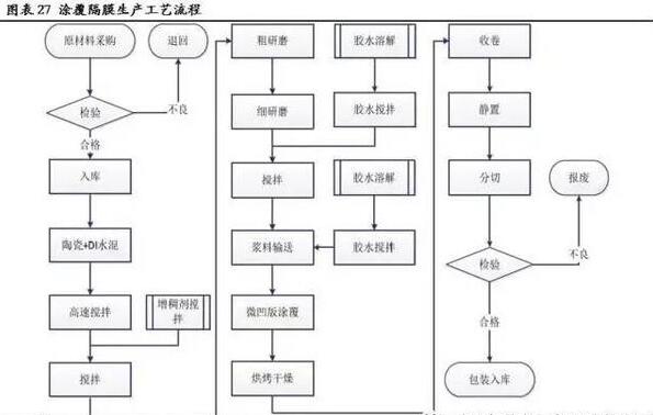 涂覆隔膜作为近年来锂电池产业链中不断进步发展的一个领域,具有较高的技术壁垒:从基材选择和预处理、涂层材料和粘结剂的选择,到高精度涂布设备的选择、涂布工艺控制与电池系统匹配等都需要经过严格的验证和试验。开发及选择原材料方面要注意筛选吸水能力低的胶水,并且筛选吸水能力低的原材料,包括胶水、陶瓷颗粒等。制作过程中注意对来料陶瓷粉和胶水经过特殊的憎水性处理,控制生产环境湿度、烘烤采用干燥气体及有效的防水性包装方式。