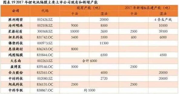 技术进步和市场空间驱动下,湿法隔膜企业不断扩建产能,传统干法隔膜企业的新建产能也一致转向湿法。2017年新政策环境下,隔膜价格承压下跌,但高端湿法隔膜企业的盈利相对更有保障。