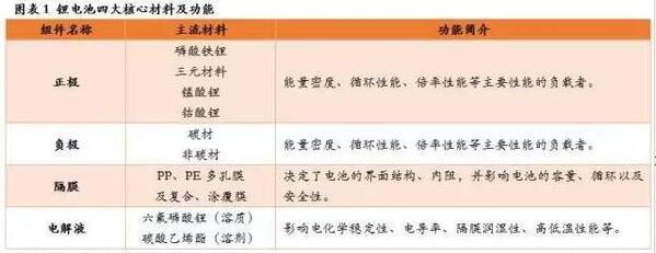 锂离子电池的内部结构中,正极、负极、隔膜、电解液是最为核心的四大材料,对锂电池的能量密度、循环性能、倍率性能、内阻等关键性能指标,以及耐高温、阻燃、自关断、电化学稳定性等安全性表现,起到直接决定和综合影响的作用。