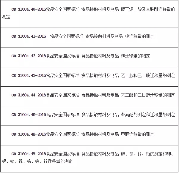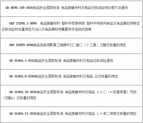 GB 31603.1-2015《食品接触材料及制品迁移试验通则》规定了食品模拟物、特殊迁移及总迁移测试条件的选择。食品接触材料添加剂标准(GB 9685-XXXX)与GB 9685-2008相比更为合理,主要变化是调整了附录化学物质清单的结构(对塑料、涂料涂层、橡胶、油墨、粘合剂、纸、硅橡胶中的添加剂分别说明),将添加剂名单及其使用要求按照使用范围进行分类,同时添加剂品种由959种扩充到1297种。