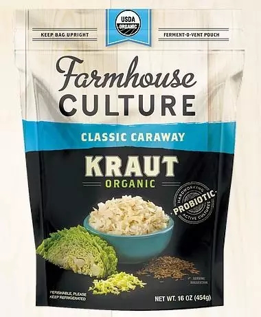 ProAmpac公司推出的FarmhouseCulture酸泡菜自立袋包装斩获了冷冻食品类的一个奖项。酸泡菜需要一个排气口,经重新设计后,ProAmpac在一个软质、可重新盖紧的自立袋上安装了一个单项防渗漏的排气阀门。一个按压就能闭合的密封链使消费者能将吃剩的泡菜重新放回冰箱,而不用再将它们倒出来放到另外的容器中。这款自立袋背面有一个透明小窗口,消费者在购买前可以看到里面的产品。