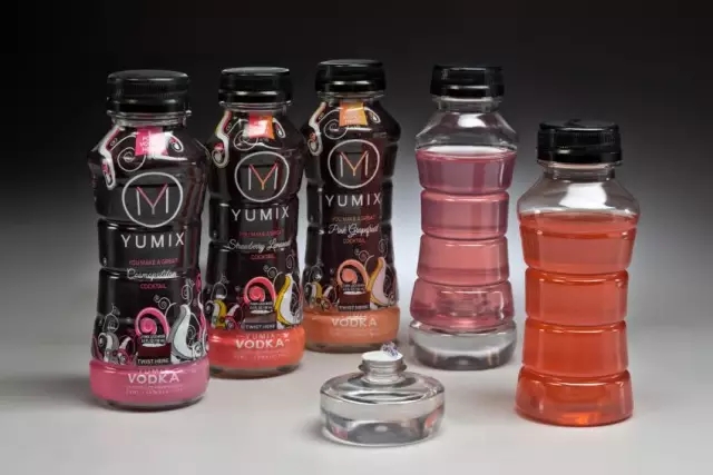 PlasticTechnologies公司的Clasper瓶技术将两个PET容器和一个收缩标签组合到一起,获得了酒精饮料类包装的奖项。这项新技术的首次商业化应用是Yumix便携式鸡尾酒的推出,它有一个装了50毫升高档酒的底部容器,瓶身主体装了6.5盎司热灌装的果汁,顶部是一个38毫米的PP盖子,由铝箔纸进行内部密封。带着图案的可收缩标签加强了视觉吸引力,标签上写着使用说明。