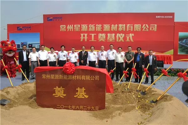 2017年6月29日上午,经开区十大重点产业项目之一——常州星源新能源材料有限公司开工奠基。项目总投资30亿元,一期建设预计明年四季度建成投产。市长丁纯和星源材质公司董事长陈秀峰等出席开工仪式。