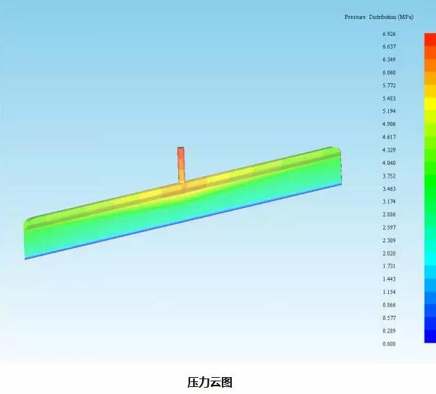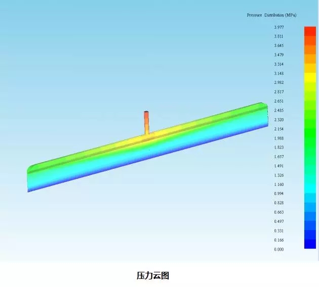 然后我们根据所检测的物料粘度信息结合以往的设计经验设计初步的流道设计方案,导入DIE-FLOW模流分析软件进行模拟分析。其结果如下: