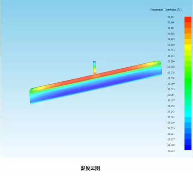 但由于两种物料存在很大的生产温度差异,假设该模内共挤模头其结构设计存在缺陷,无法实现高温差的有效隔热,低温层的温度失控,无法得到理想的100℃的生产温度,模头的温度上升至150℃,那将会是什么样的状态呢?我们将模拟的A层的温度设定为150℃看其发生的变化。