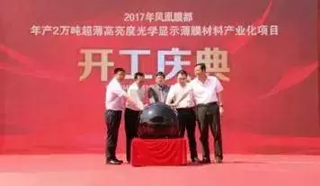 5月27日,年产2万吨超薄高亮度光学显示薄膜材料产业化项目——“凤凰膜都”在四川绵阳市涪城区临港经济开发区正式开工建设,总投资达10亿余元。