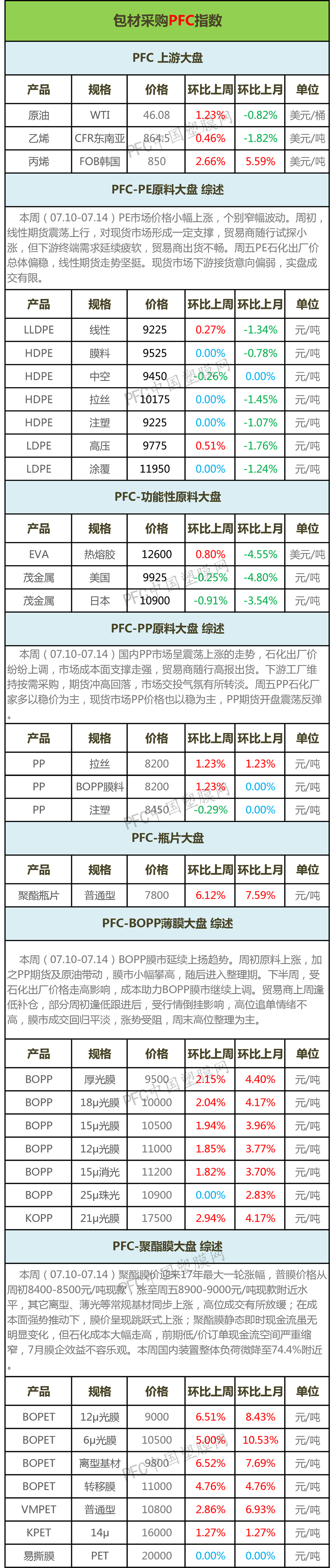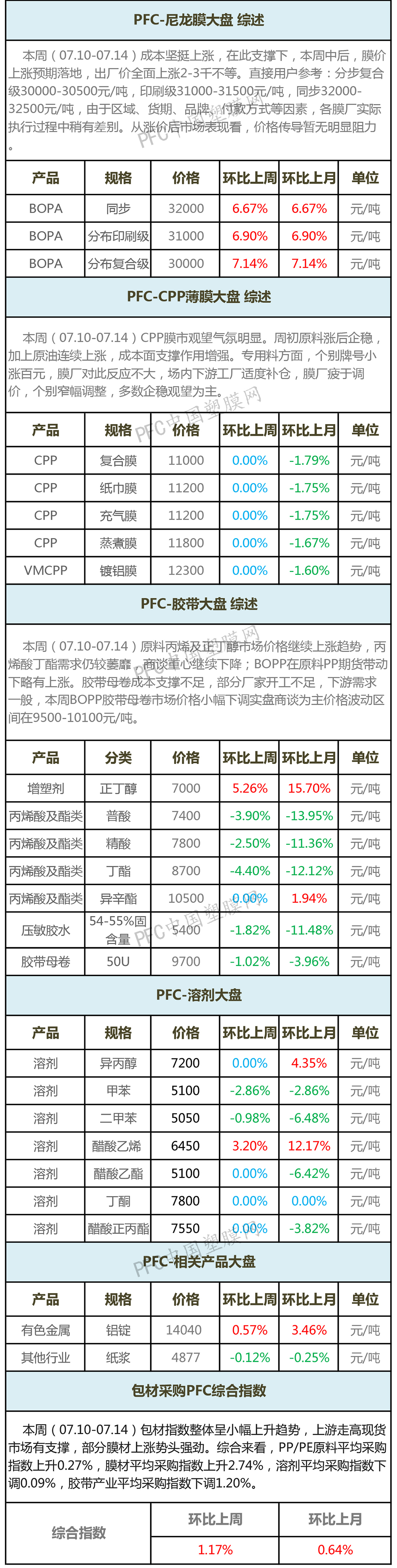 编者声明: 1、以上指数价格为全国各地市场加权平均值,数据仅供参考。 2、数据仅用来衡量主要企业或当地市场的一个价格水平和趋势,不作为成交依据。 以上数据为中国塑膜网独家采集整理,如使用本文,请注明内容来源于“中国塑膜网” |