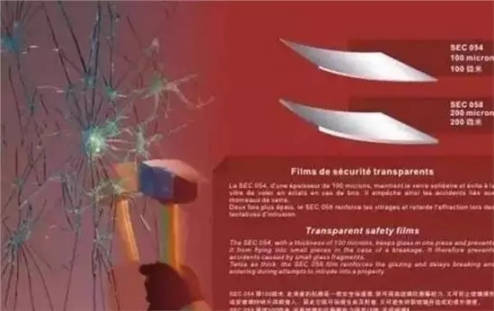 首先,从材料的结构和厚度上来说,安全膜的厚度在100-175微米(约3-7mil)之间;汽车窗膜是采用特殊工艺层压而成的多层聚酯复合膜,厚度在50微米(约1.5mil)左右。
