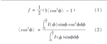 式中, 〈cos2ϕ〉称为取向参数. I(ϕ) 为片晶随ϕ角变化的强度.