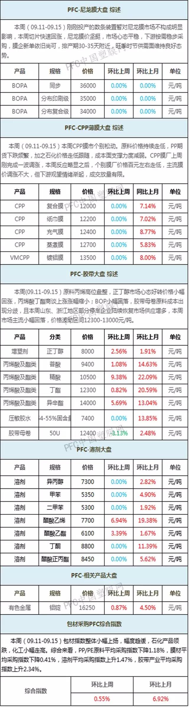 编者声明: 1、以上指数价格为全国各地市场加权平均值,数据仅供参考。 2、数据仅用来衡量主要企业或当地市场的一个价格水平和趋势,不作为成交依据。 以上数据为中国塑膜网独家采集整理,如使用本文,请注明内容来源于“中国塑膜网” |