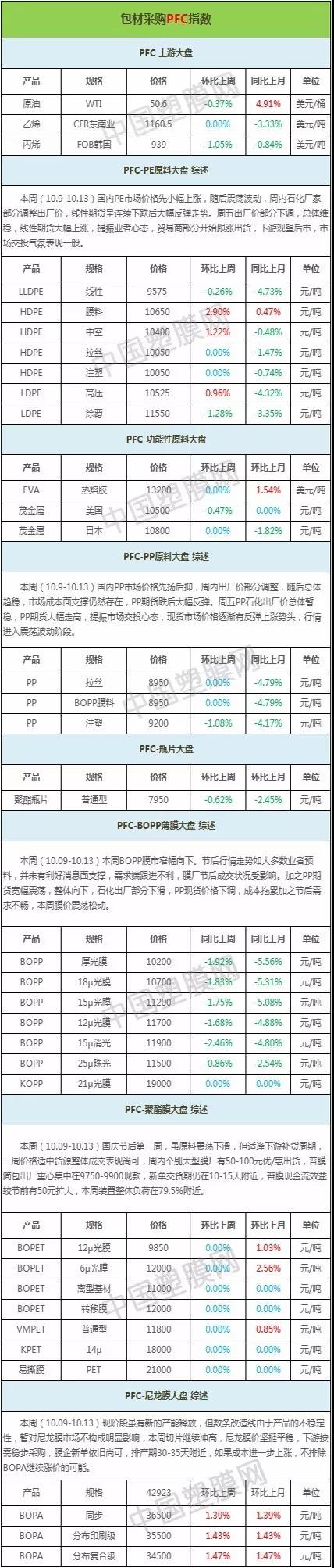 编者声明: 1、以上指数价格为全国各地市场加权平均值,数据仅供参考。 2、数据仅用来衡量主要企业或当地市场的一个价格水平和趋势,不作为成交依据。 以上数据为中国塑膜网独家采集整理,如使用本文,请注明内容来源于“中国塑膜网” |