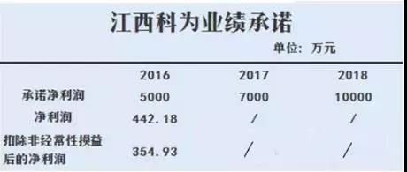双方签订了股权转让协议,转让方承诺江西科为2016年度、2017年度及2018年度实现的经审计的净利润不低于人民币5,000万元、7,000万元和10,000万元。