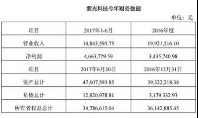 紫光科技今年财务数据