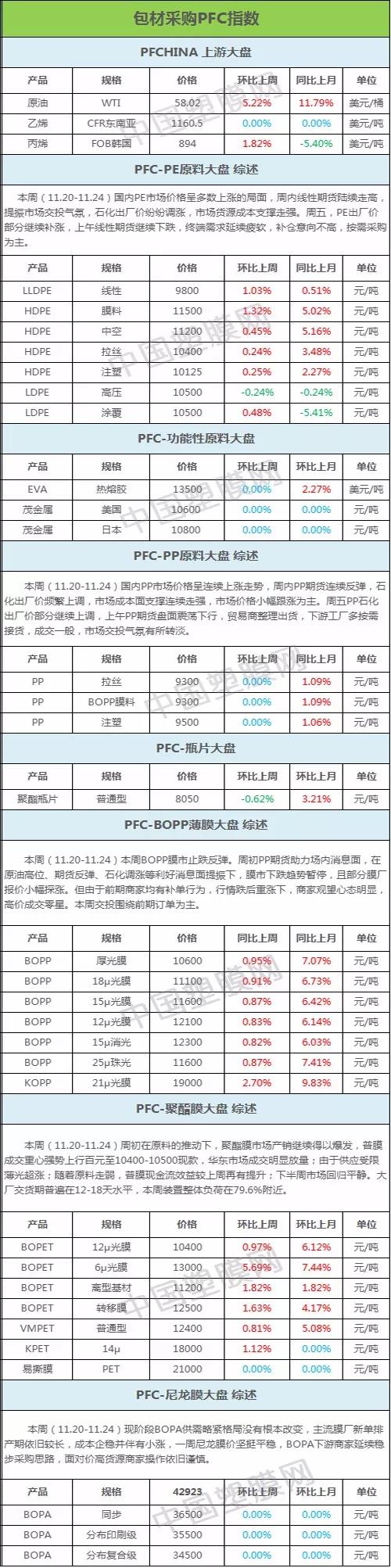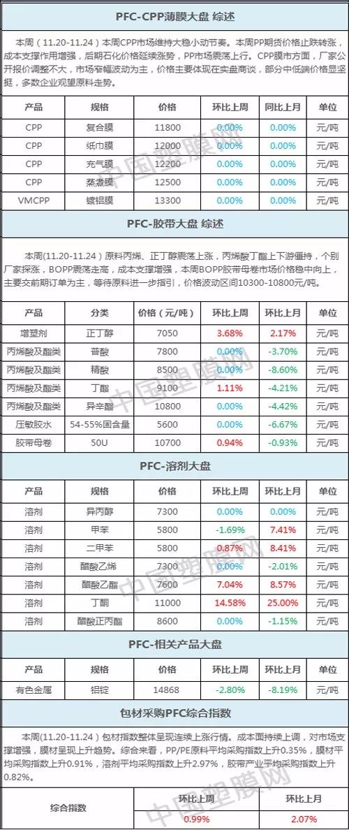 编者声明: 1、以上指数价格为全国各地市场加权平均值,数据仅供参考。 2、数据仅用来衡量主要企业或当地市场的一个价格水平和趋势,不作为成交依据。 以上数据为中国塑膜网独家采集整理,如使用本文,请注明内容来源于“中国塑膜网” |