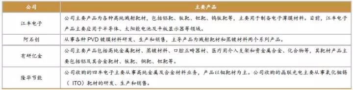 国家产业政策、研发基金的陆续发布和落实给国内溅射靶材行业的快速发展营造了良好的产业环境,国产企业实力进一步增强。加上数年的科技攻关和生产试验,国内高纯溅射靶材生产企业已经逐渐突破关键技术门槛,拥有了部分产品的规模化生产能力,形成了以江丰电子、阿石创、有研亿金、隆华节能等为代表的专业从事高纯溅射靶材的生产商。