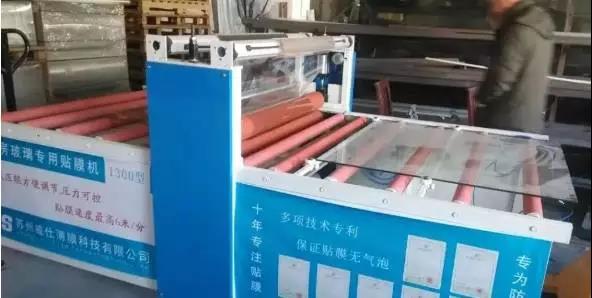 3. 设备贴膜不需用水,贴完后可立即进行后期加工。进行中空合成。不用存放晾干。可以像常规玻璃一样摆放。不用像手工贴膜必需分开存放、方便晾干、节省空间。也不会有因水份造成的水雾、气泡、彩虹斑现象。适宜工厂化大规模装贴。