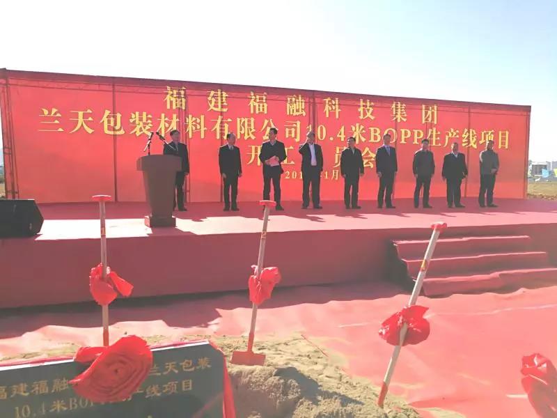 2018年1月10日上午,福融科技集团在兰天包装材料有限公司项目用地现场举行了盛大的10.4m BOPP生产线项目开工奠基仪式。