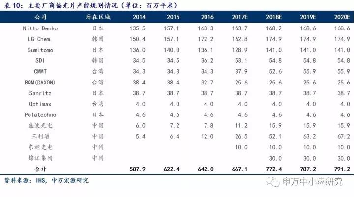 3.3 预计2017年全球LCD背光模组用光学膜市场空间约112亿元,至2019年偏光片全球市场规模有望千亿