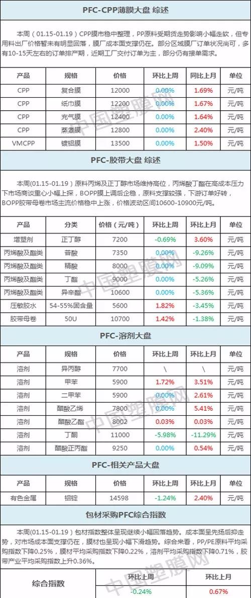 编者声明: 1、以上指数价格为全国各地市场加权平均值,数据仅供参考。 2、数据仅用来衡量主要企业或当地市场的一个价格水平和趋势,不作为成交依据。 以上数据为中国塑膜网独家采集整理,如使用本文,请注明内容来源于“中国塑膜网” |