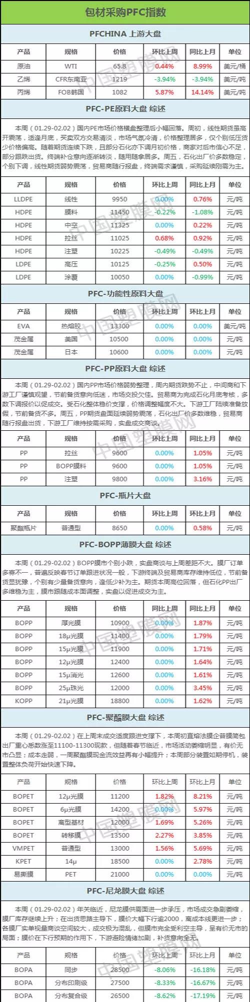 编者声明: 1、以上指数价格为全国各地市场加权平均值,数据仅供参考。 2、数据仅用来衡量主要企业或当地市场的一个价格水平和趋势,不作为成交依据。 以上数据为中国塑膜网独家采集整理,如使用本文,请注明内容来源于“中国塑膜网” |