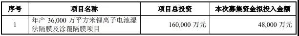 星源材质拟募资4.8亿元,用于年产36000万平米湿法涂覆隔膜项目。