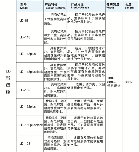 3、专为动力软包锂电池设计,可以满足软包锂电池客户定制开发铝塑膜、铜塑膜、钢塑膜等产品。