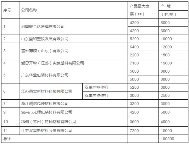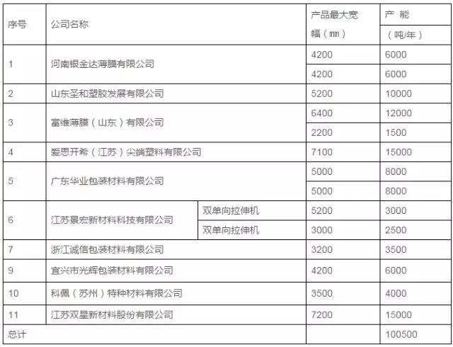 1、国内收缩膜产能(数据来自中国包装联合会)