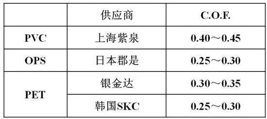 *注:摩擦系数高低和所选用的聚酯材料有关,PET一般较低,而有些改性PET接近PVC。