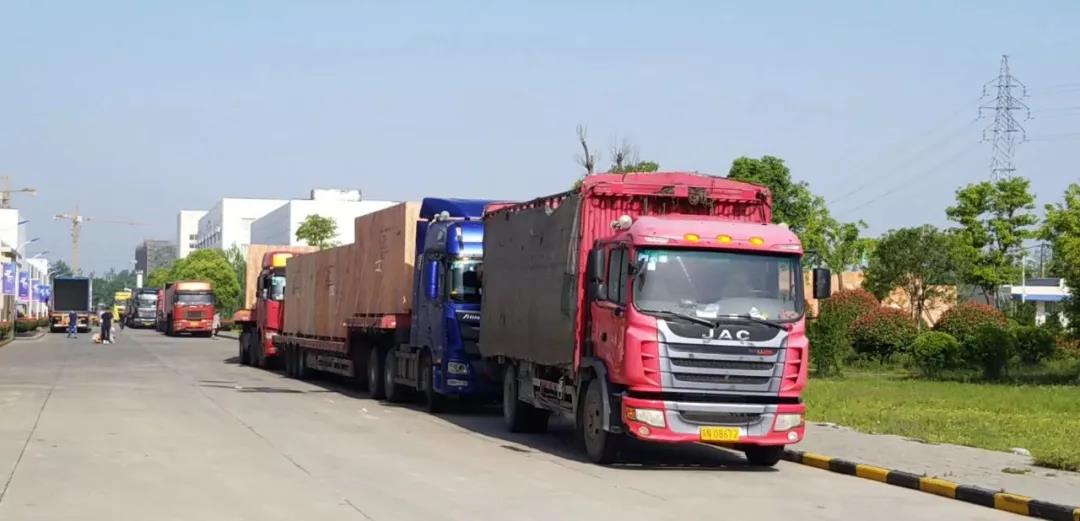 2018年5月23日8:08分,宿迁市金田塑业有限公司五线工地鞭炮、礼花争先齐鸣,19辆满载进口设备的大货车缓缓驶入厂区。