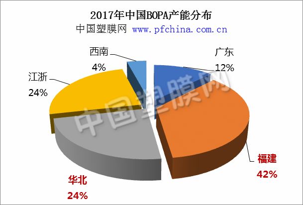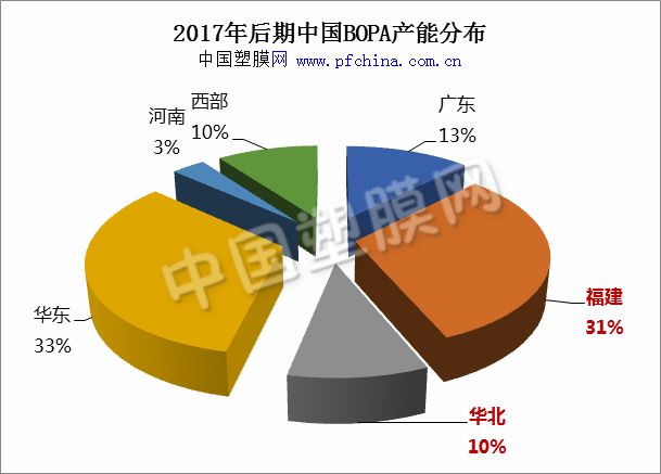 上下两幅图中(图1;图2),福建地区产能全部为厦门长塑占有;江浙地区新增数条BOPA装置,变化最大的是广东和西部市场,随着运城塑业的强势扩张,和其它膜企的新装置投入,中国内地BOPA版图发生着巨大的变化。