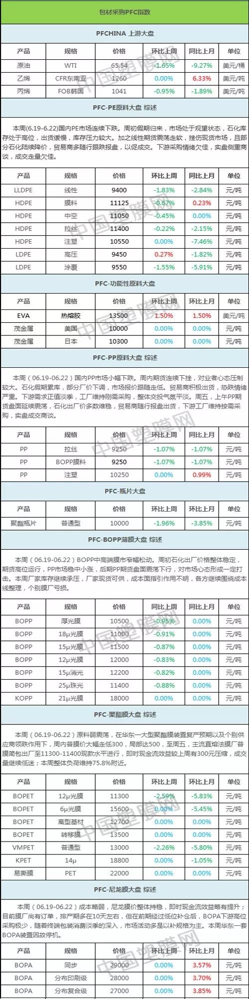 编者声明: 1、以上指数价格为全国各地市场加权平均值,数据仅供参考。 2、数据仅用来衡量主要企业或当地市场的一个价格水平和趋势,不作为成交依据。 以上数据为中国塑膜网独家采集整理,如使用本文,请注明内容来源于“中国塑膜网” |