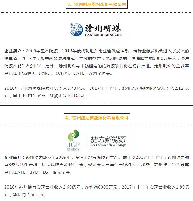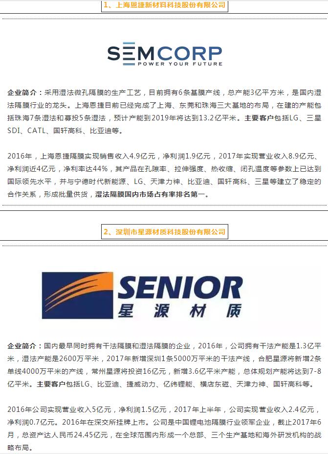 目前国内做锂电池隔膜比较好的企业:(仅列几家)
