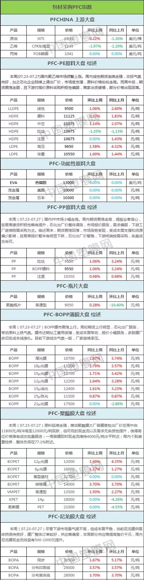 编者声明: 1、以上指数价格为全国各地市场加权平均值,数据仅供参考。 2、数据仅用来衡量主要企业或当地市场的一个价格水平和趋势,不作为成交依据。 以上数据为中国塑膜网独家采集整理,如使用本文,请注明内容来源于“中国塑膜网” |