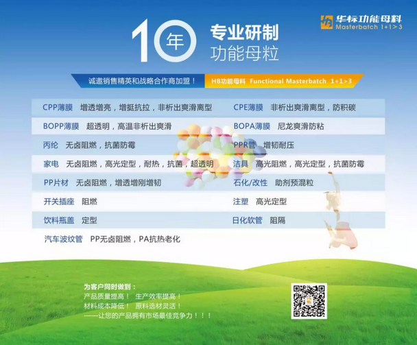 华标塑胶科技,是一家从事塑料添加剂、塑料功能母粒、特殊改性塑料研发、生产和销售的专业技术型企业。