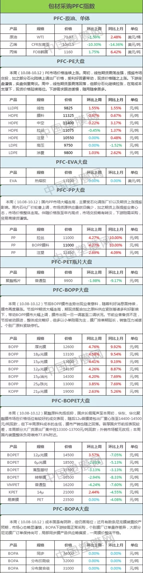 编者声明: 1、以上指数价格为全国各地市场加权平均值,数据仅供参考。 2、数据仅用来衡量主要企业或当地市场的一个价格水平和趋势,不作为成交依据。 以上数据为中国塑膜网独家采集整理,如使用本文,请注明内容来源于“中国塑膜网” |