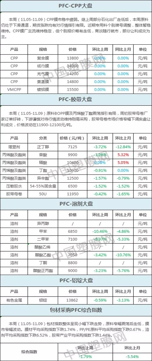 编者声明: 1、以上指数价格为全国各地市场加权平均值,数据仅供参考。 2、数据仅用来衡量主要企业或当地市场的一个价格水平和趋势,不作为成交依据。 以上数据为中国塑膜网独家采集整理,如使用本文,请注明内容来源于“中国塑膜网” |