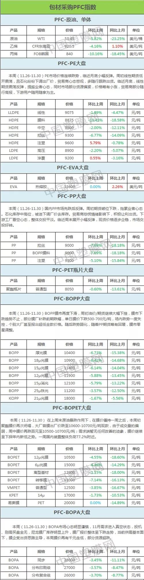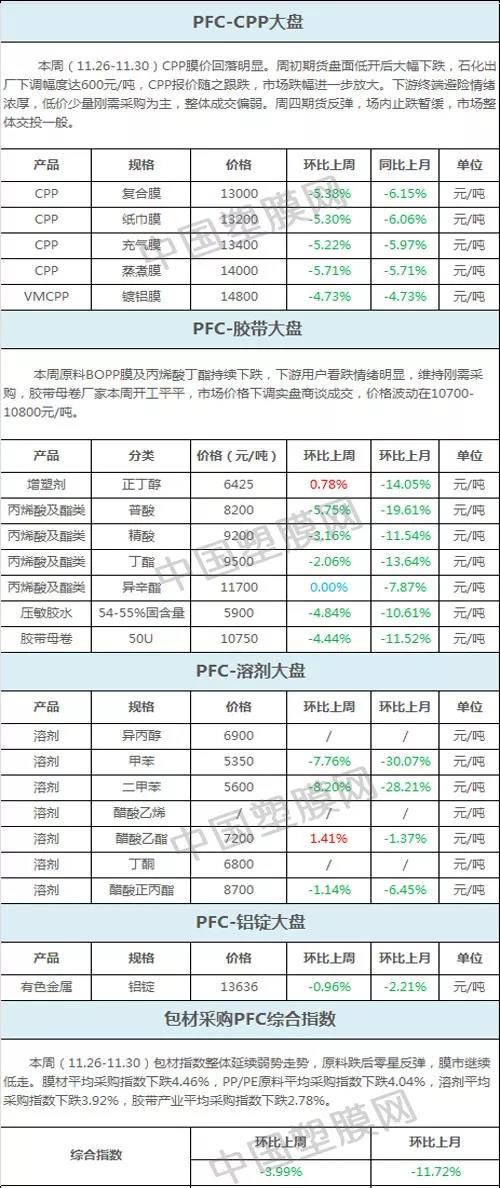 编者声明: 1、以上指数价格为全国各地市场加权平均值,数据仅供参考。 2、数据仅用来衡量主要企业或当地市场的一个价格水平和趋势,不作为成交依据。 以上数据为中国塑膜网独家采集整理,如使用本文,请注明内容来源于“中国塑膜网” |