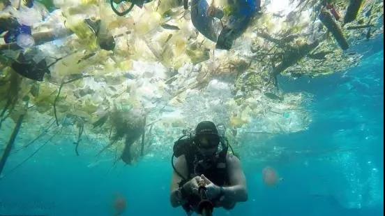 资料图:当地时间2018年3月3日,一名英国男子在巴厘岛海域潜水时拍下触目惊心的一幕。海洋中漂浮着大量塑料垃圾:瓶子、袋子、杯子、桶、吸管等等,鱼类及其他海洋生物都避之而不及。