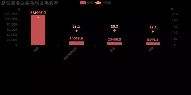 具体而言, “烟标”营业收入为25.7亿,营收占比为63.4%。“镭射包装材料”营业收入为6.1亿,营收占比为15%。“彩盒”营业收入为4.5亿,营收占比为11%。