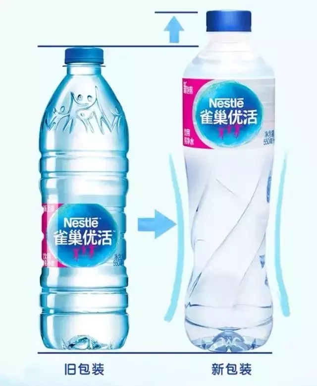 自 2016 年后,雀巢首次更新包装,整体设计与此前几代瓶身完全不同。雀巢优活的新包装因外观与奖杯相似而被称为“奖杯瓶”。新包装瓶身变高、瓶口变大,由于瓶盖、瓶身重量增加,整体包装也更重。相比过去的包装,奖杯状的造型加上瓶身的旋转纹理更容易握持。